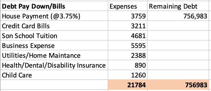 The only additional investment contribution we made this month was adding 10k to our son’s 529. I have a goal to invest $180k (10k for 18 years) and I have the extra cash right now so I added on another 10k ($20k for the year). Any extra cash we kept in our HYSA.
