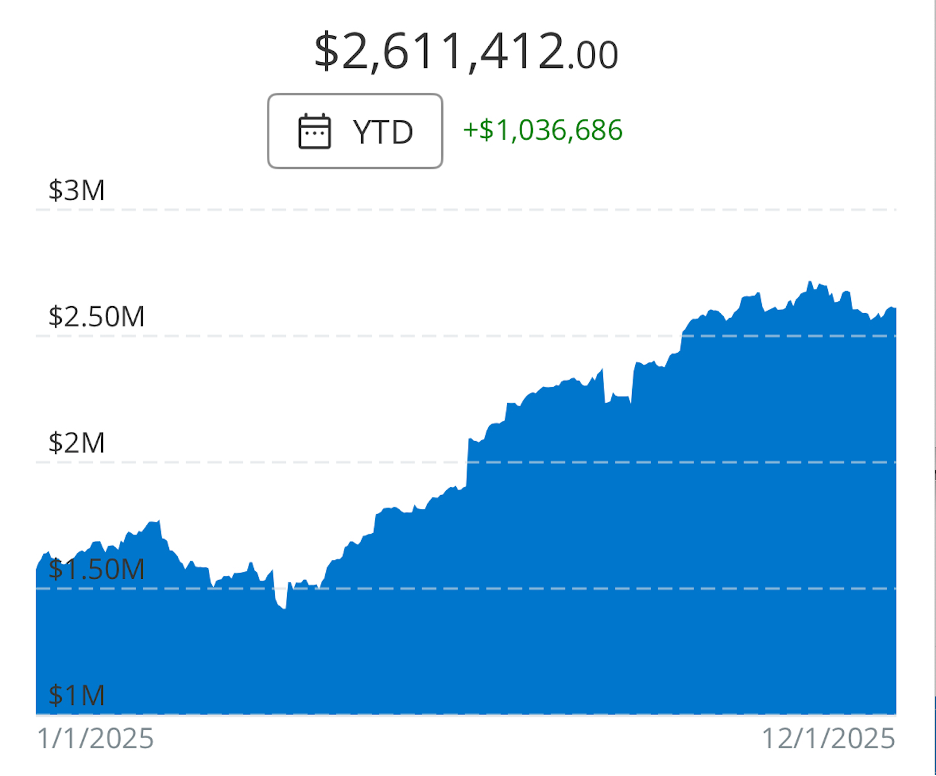 November was a volatile month for the market, it dropped quite a bit but then had a decent recovery into the end of month. I own a fair amount of crypto and with bitcoin dropping below 100k, this dropped my accounts for the year.
